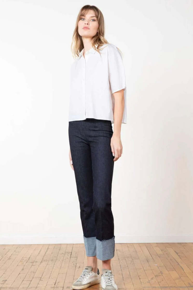 The BONNIE style is a full length straight pant, with a dramatic 5" cuff that brings it a touch of originality.