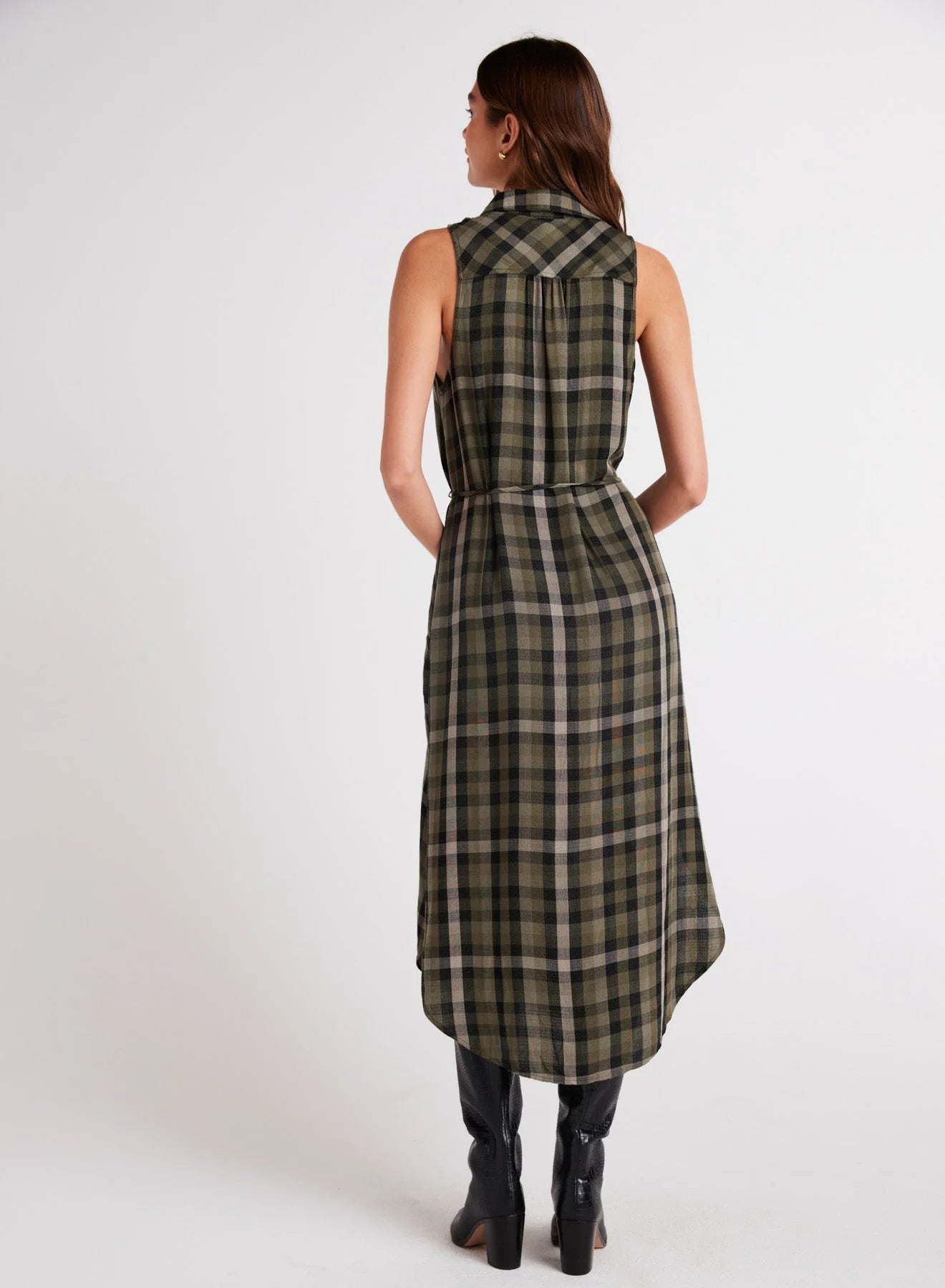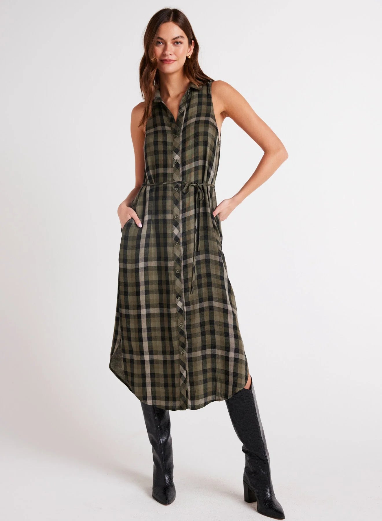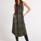 Embrace the timeless charm of plaid with our elegant Sleeveless Button Down Dress, a mEmbrace the timeless charm of plaid with our elegant Sleeveless Button Down Dress, a must-have addition to your wardrobe. With its versatile design, you can easily dress it up or down, pairing it with heels for a chic look or sneakers for a more relaxed vibe. 80% Rayon 20% Polyester.