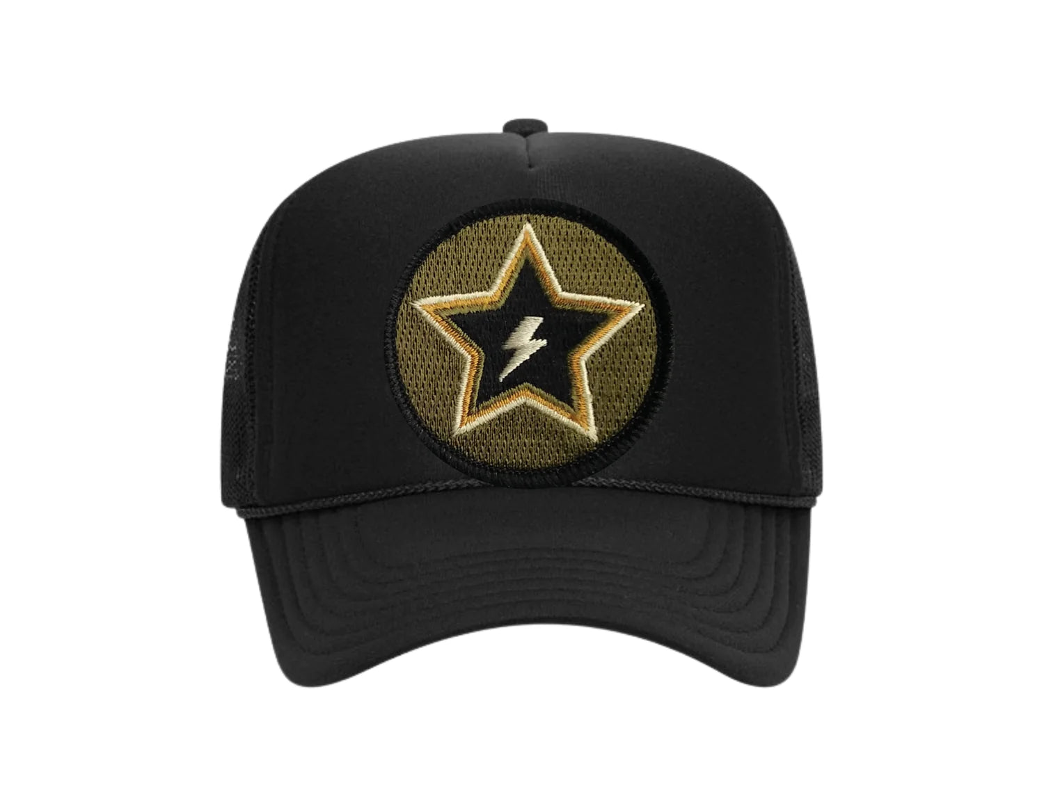 Find your 'Friday Happy' no matter what day it is! A hat to look and feel good in! A comfortable foam front, mesh back, high crown trucker hat featuring an adjustable snap back.