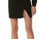 Cut from soft sueded fabric, this stylish mini skirt features a front slit achieved through overlapping panels Complete this look: Pair with our Banded Pullover done in the same sueded fabric for a luxe monochromatic look.