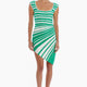 Mix things up in the Lizette Dress. Designed with a bold stripe print, cap sleeves, and a square neckline, this dress stands out with its striking asymmetrical hem.