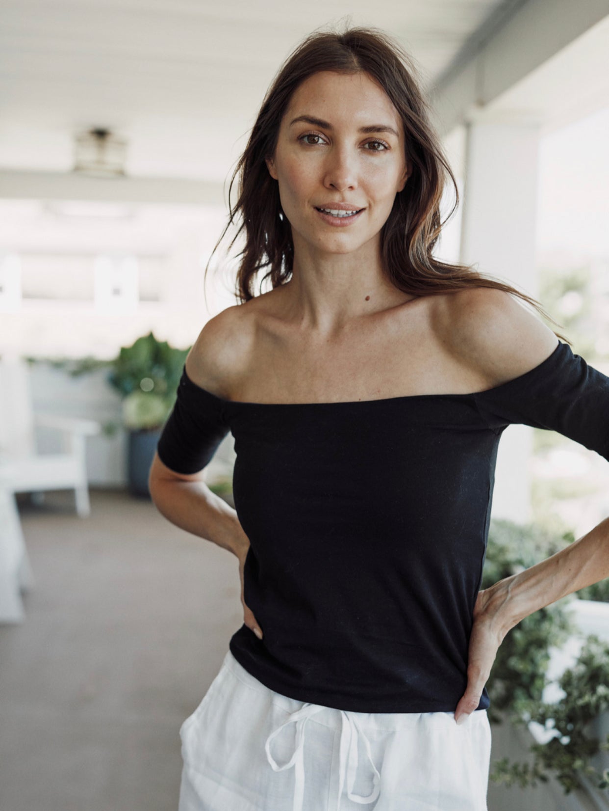 Reversible off-shoulder top goes from black to navy. pair with jeans, trousers or a pencil skirt and change the color according to your mood! perfect for travel.