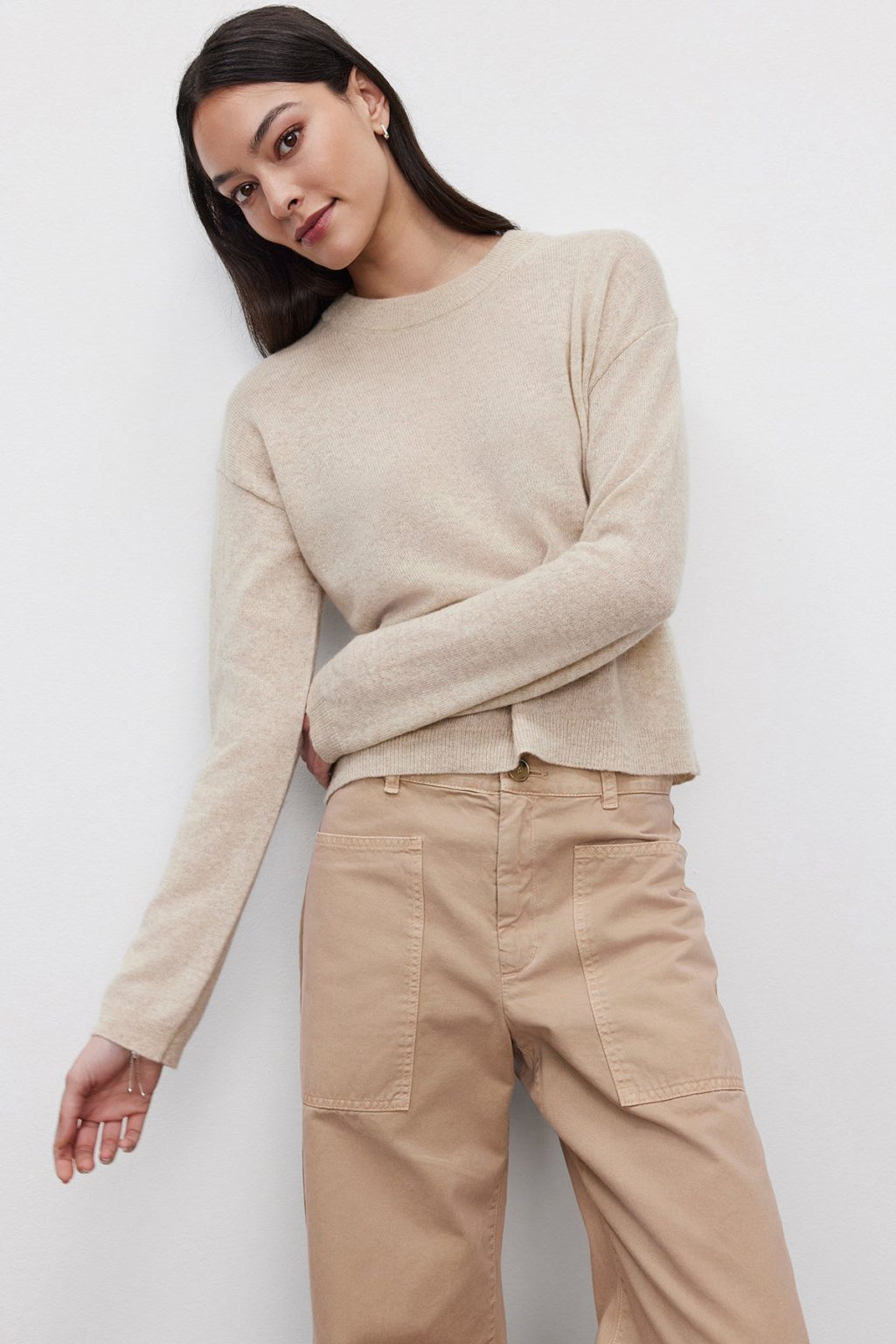 Experience pure luxury with the Velvet Brooklyn Sweater in Sand. Made from 100% cashmere, this sweater offers unbeatable softness and features a crew neckline and ribbed trims for added comfort. Its slightly cropped design adds a modern touch to any outfit - casual or refined!