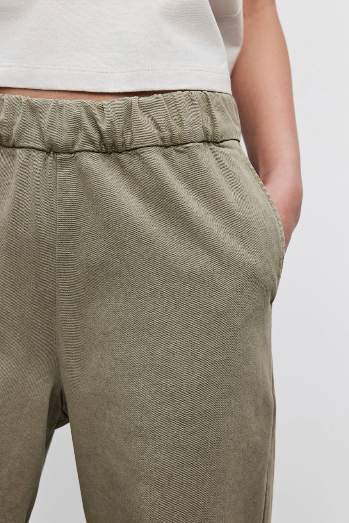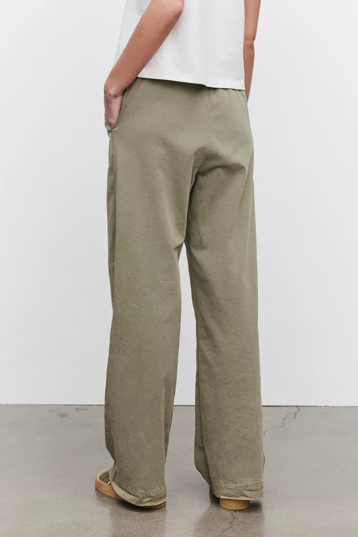 Crafted from stretch cotton twill and featuring an elastic waistband and slash pockets, these wide-leg pants offer a comfortable, relaxed fit that pairs effortlessly with any top.